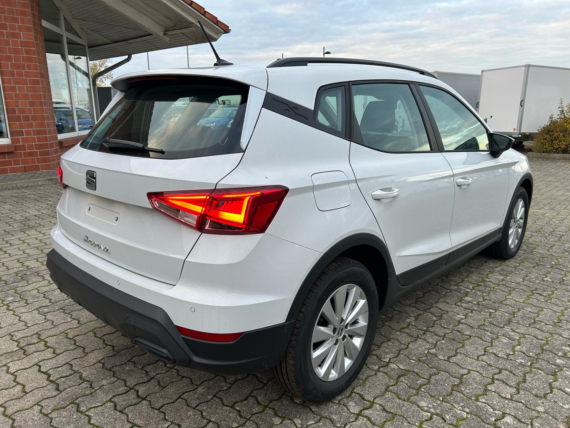 Seat Arona Style 1.0 TSI 95PS in Glacial Weiß Metallic mit folgender Sonderausstattung:WinterpaketVorbereitung Anhängevorrichtung (Das Fahrzeug hat keine Anhängerkupplung verbaut, sondern nur die Vorbereitung!)NotradWireless Full LinkKlima-Komfort-Paket (Innenspiegel automatisch abblendend, Regensensor und 2-Zonen-Klimaautomatik)Garantieverlängerung für 3 weitere Jahre oder 100.000 kmDas Fahrzeug kann deutschlandweit angeliefert werden.Elektrische Fensterheber vorne und hintenHöhenverstellbares LenkradHöhenverstellbarer Fahrer- und BeifahrersitzInnenspiegel automatisch abblendendLaderaumabdeckungDoppelter LaderaumbodenSitzbank hinten geteiltRadio / USBBluetooth / FreisprecheinrichtungReifendruckkontrolleRückleuchten mit LEDAußenspiegel elektrisch verstell,- beheiz- und anklappbarLED ScheinwerferSpurhalteassistentUmfeldbeobachtungssystem "Front Assist" mit City-Notbremsfunktion (Notbremsassistent)VerkehrszeichenerkennungEU-FahrzeugGarantiebeginn 10/2025UPE inkl. Überführungskosten ca. 28.680,00 EURFür weitere Fragen stehen wir Ihnen telefonisch oder per E-Mail gern zur Verfügung. Gern nehmen wir Ihr Fahrzeug in Zahlung. Bei Bedarf bieten wir Ihnen verschiedene Finanzierungsmodelle unserer Partnerbanken - individuell auf Sie zugeschnitten. Auch Finanzierungsübernahme, Verrechnung des Altfahrzeugs in die Neufinanzierung und Kreditablösung. Irrtümer, Zwischenverkauf und Änderungen vorbehalten. Ausstattungs- und Verbrauchsangaben basieren auf der Abfrage der VIN-Daten über das DAT SilverDAT System. In Einzelfällen kann es zu Datenfehlern kommen. Die gemachten Angaben gelten nicht als zugesicherte Eigenschaft im Sinne des BGB 434 Abs. 1 Satz 3.